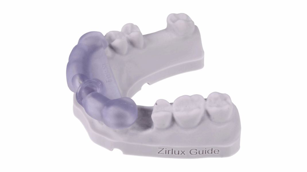 Zirlux Surgical Guide Resin is a rigid, biocompatible (class I) 3D printing resin designed to create surgical guides. The material is stiff and durable to withstand the forces of guided surgery in the oral cavity.​